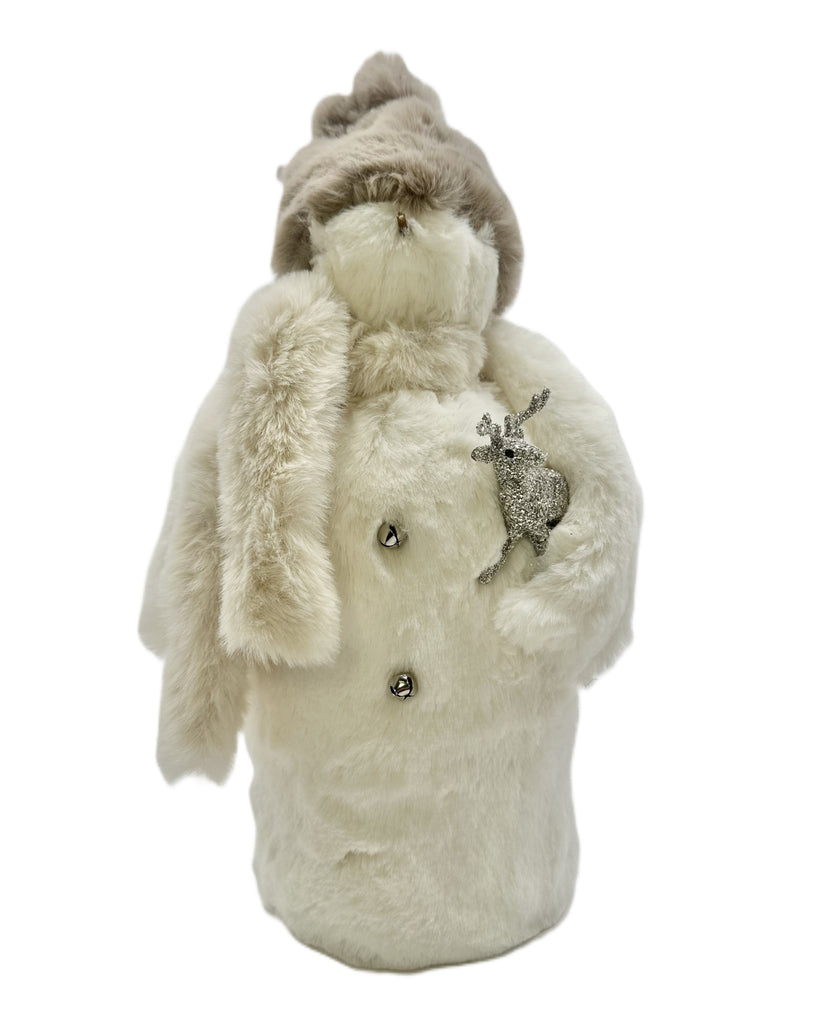 Step into the enchanting world of holiday magic with Frosty, the most stylish snowman in town! Frosty is no ordinary snowman— his sparkling face and twig nose are visions of winter. Elegantly dressed in a sumptuous ivory-hued faux fur coat with tiny jingle bell buttons and a coordinating hat. His luxurious ensemble captures the essence of frosty sophistication, making him the centerpiece of any festive display.
