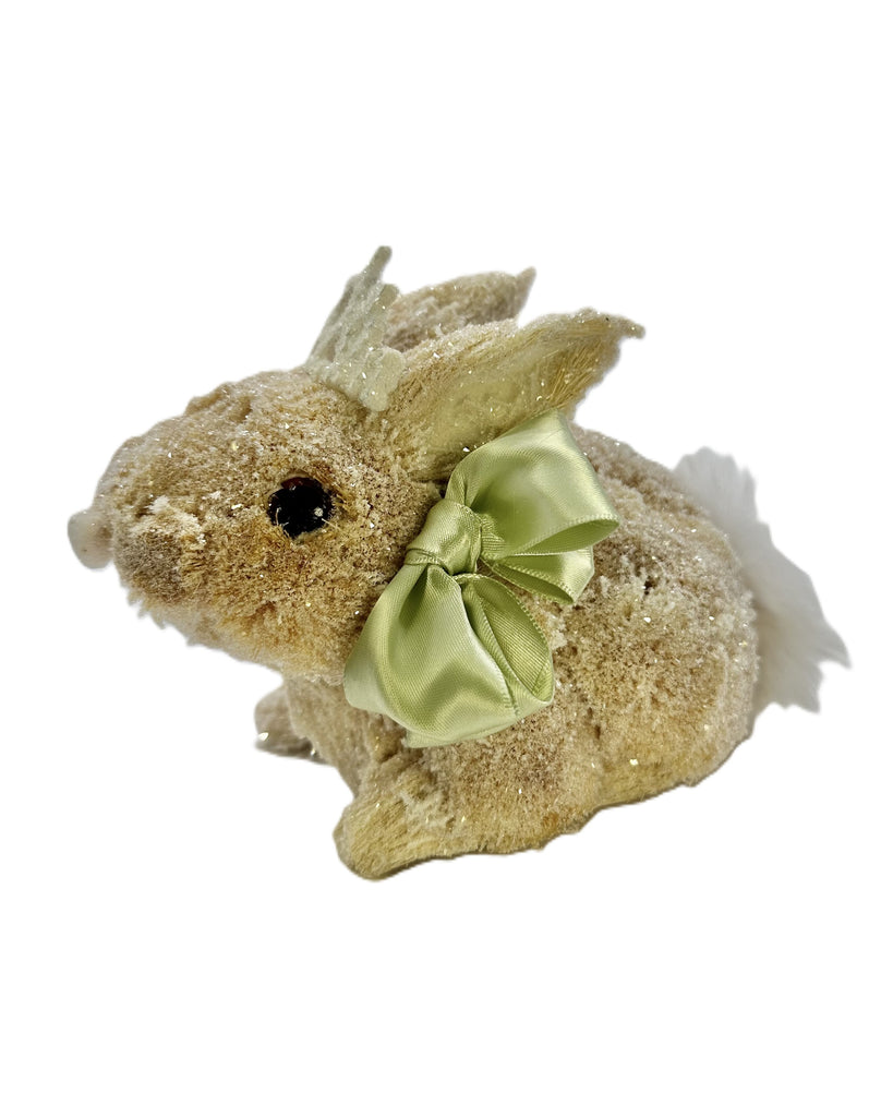 Meet our hopper extraordinaire. This sisal sensation is decked out in sparkling glass glitter and a fluffy white cottontail, making it the centerpiece of your Easter festivities. Our bunny is adorned with a floppy pastel green satin bow and can hop into your heart. The pièce de résistance – a glittery tiara that says, "I'm here to hop into Easter."