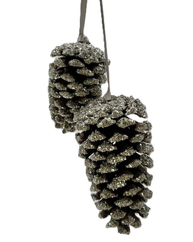 Double Hanging Pinecone Ornament - Silver